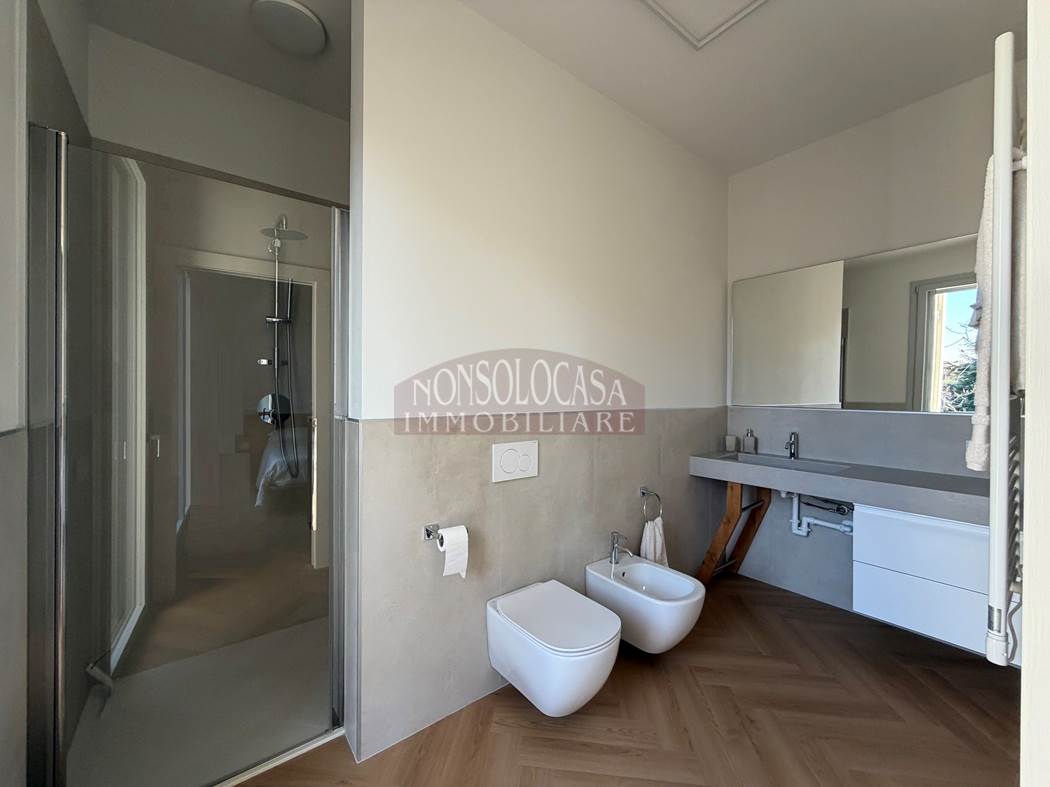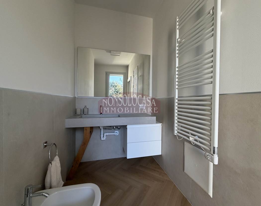 A completare la proprietà troviamo un box auto con basculante automatizzata, un posto auto scoperto e un impianto fotovoltaico da 3 kW, soluzione che garantisce efficienza energetica e un sensibile risparmio sui consumi.